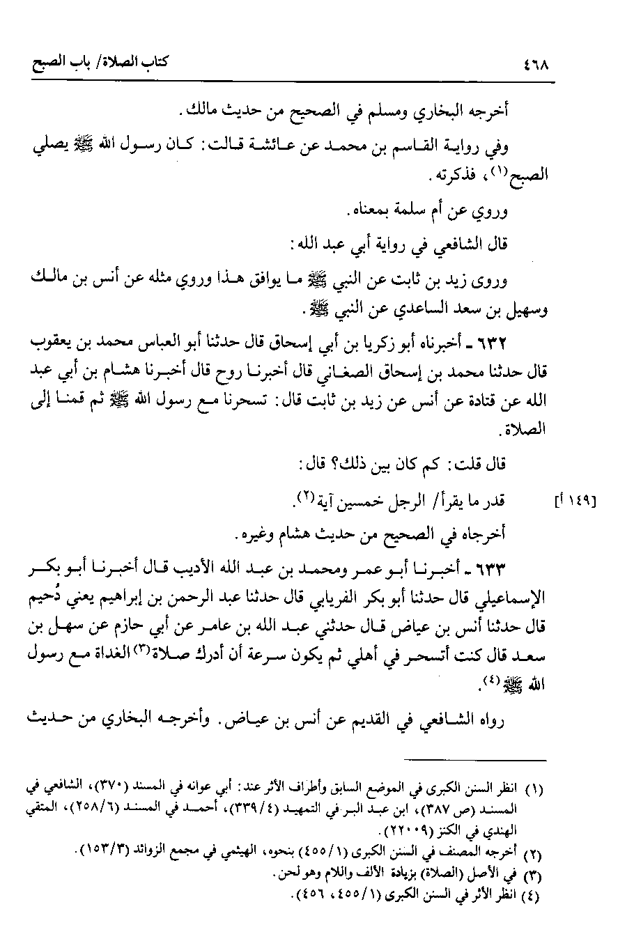 قال الشافعي في رواية أبي عبد الله : وروى زيد بن ثابت عن النبي صلى الله عليه وسلم ما يوافق هذا وروي مثله عن أنس بن مالك وسهيل بن سعد الساعدي عن النبي صلى الله عليه وسلم 632 - أخبرناه أبو زكريا بن أبي إسحاق قال حدثنا أبو العباس محمد بن يعقوب قال حدثنا محمد بن إسحاق الصغاني قال أخبرنا روح قال أخبرنا هشام بن أبي عبد الله عن قتادة عن أنس عن زيد بن ثابت قال : تسحرنا مع رسول الله صلى الله عليه وسلم ثم قمنا إلى الصلاة.
