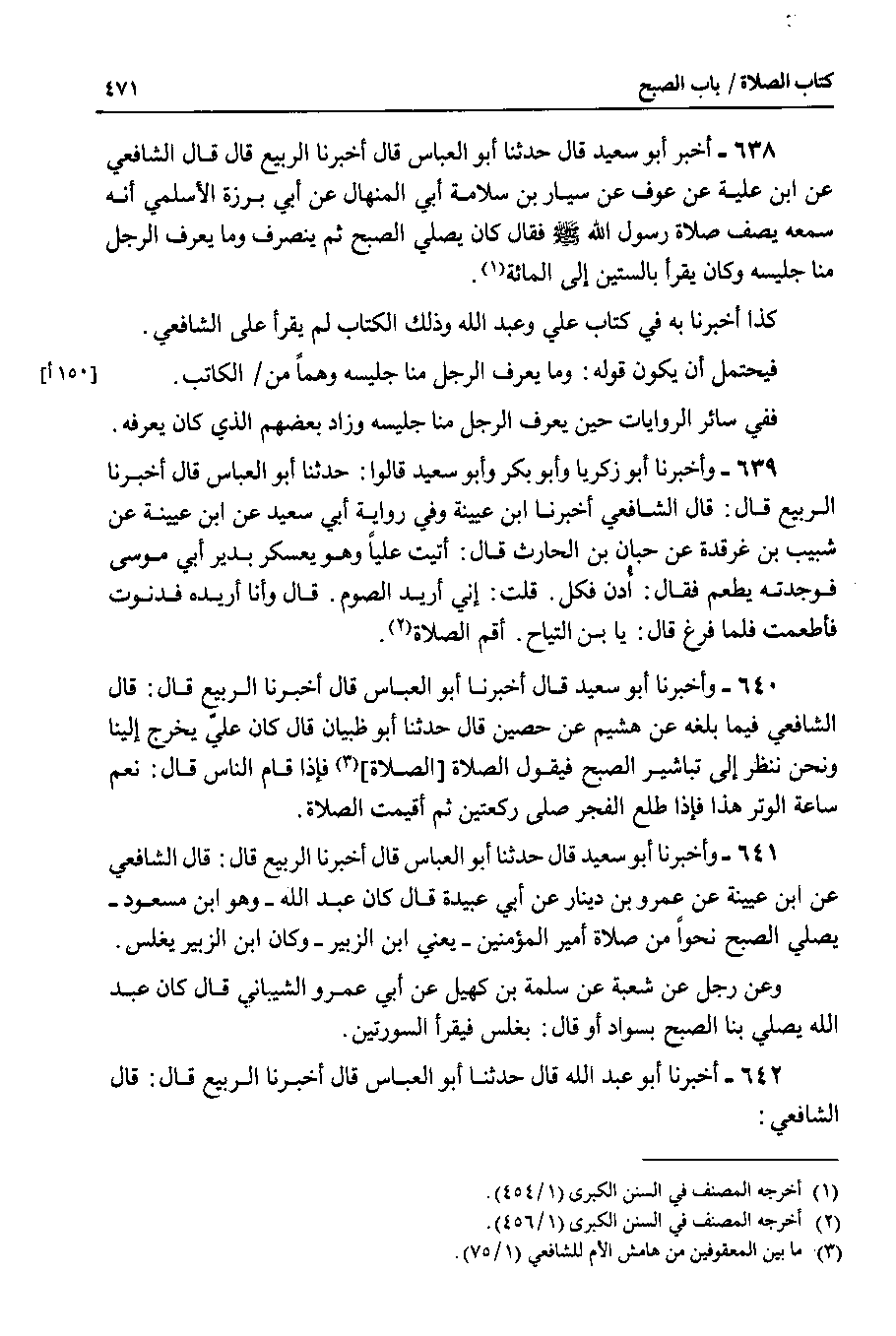 641 - وأخبرنا أبو سعيد قال حدثنا أبو العباس قال أخبرنا الربيع قال : قال الشافعي عن ابن عيينة عن عمرو بن دينار عن أبي عبيدة قال كان عبد الله - وهو ابن مسعود - يصلي الصبح نحوا من صلاة أمير المؤمنين - يعني ابن الزبير - وكان ابن الزبير يغلس.