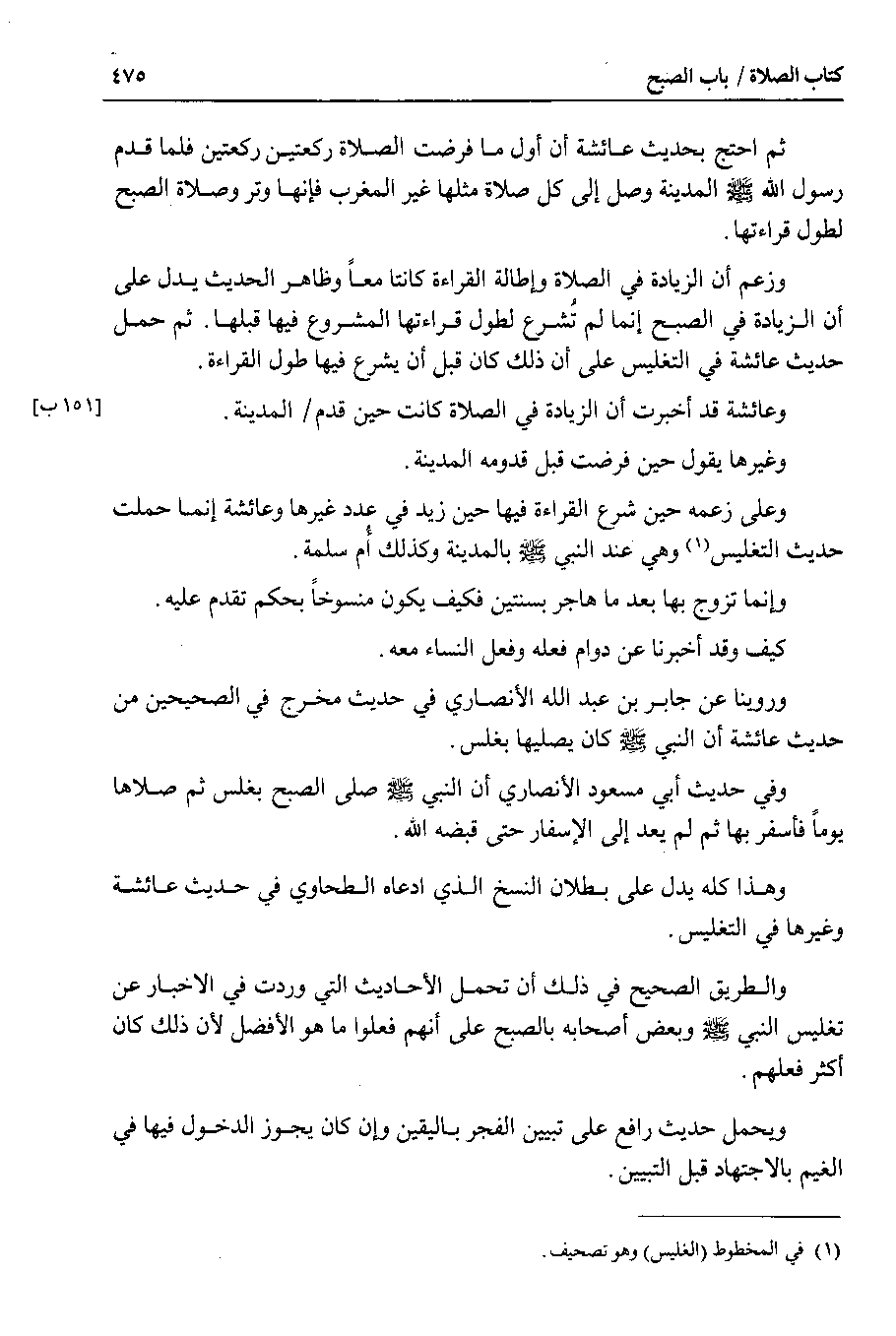 وهذا كله يدل على بطلان النسخ الذي ادعاه الطحاوي في حديث عائشة وغيرها في التغليس.