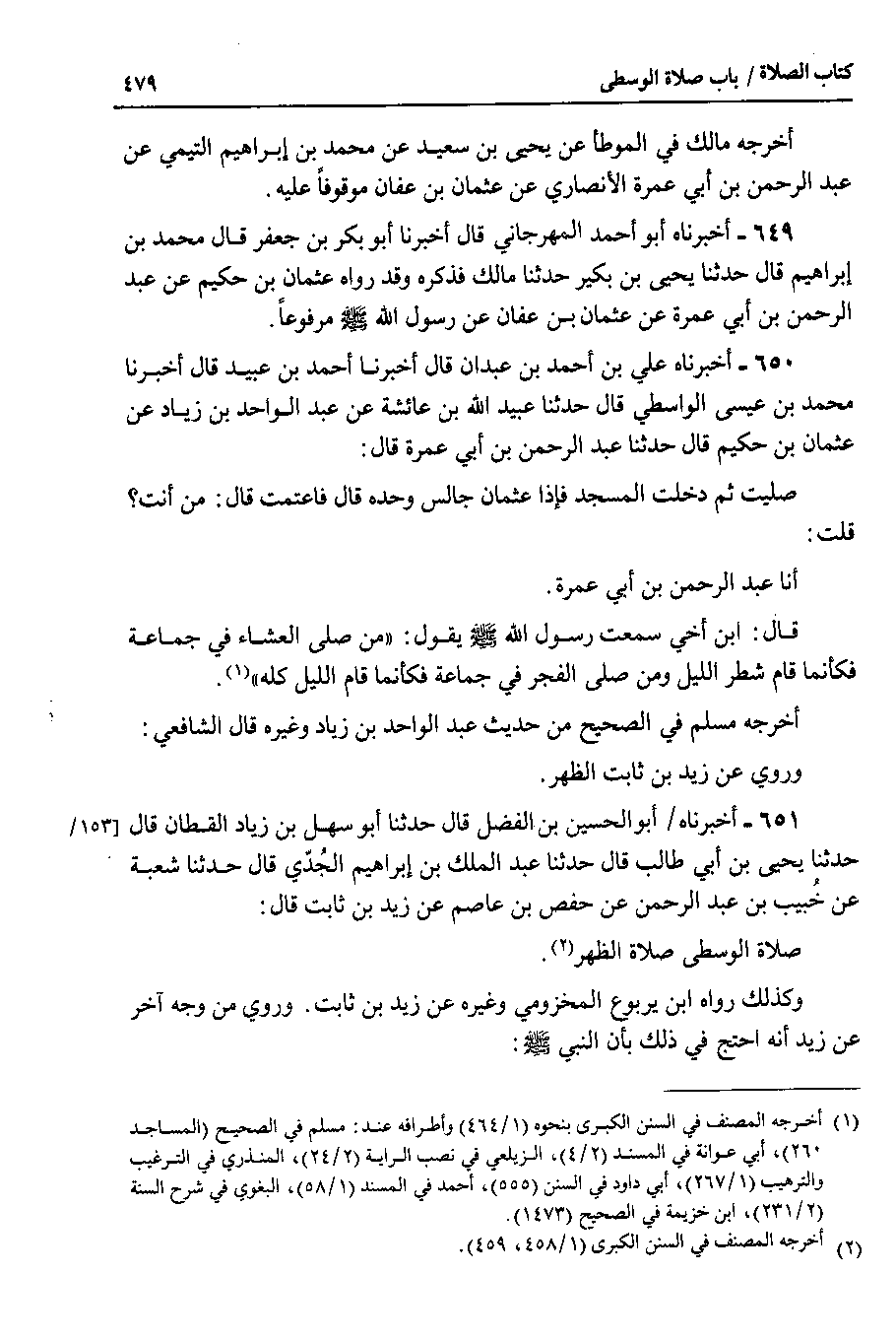 651 - أخبرنا أبو الحسين بن الفضل قال حدثنا أبو سهل بن زياد القطان قال حدثنا يحيى بن أبي طالب قال حدثنا عبد الملك بن إبراهيم الجدي قال حدثنا شعبة عن خبيب بن عبد الرحمن عن حفص بن عاصم عن زيد بن ثابت قال : صلاة الوسطى صلاة الظهر.