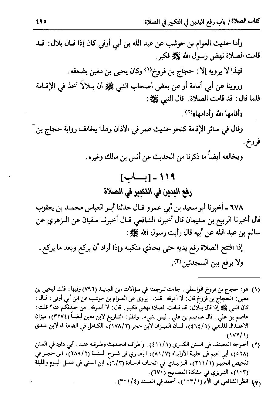 678 - أخبرنا أبو سعيد بن أبي عمرو قال حدثنا أبو العباس محمد بن يعقوب قال أخبرنا الربيع بن سليمان قال أخبرنا الشافعي قال أخبرنا سفيان عن الزهري عن سالم بن عبد الله عن أبيه قال رأيت رسول الله صلى الله عليه وسلم : إذا افتتح الصلاة رفع يديه حتى يحاذي منكبيه وإذا أراد أن يركع وبعدما يركع.