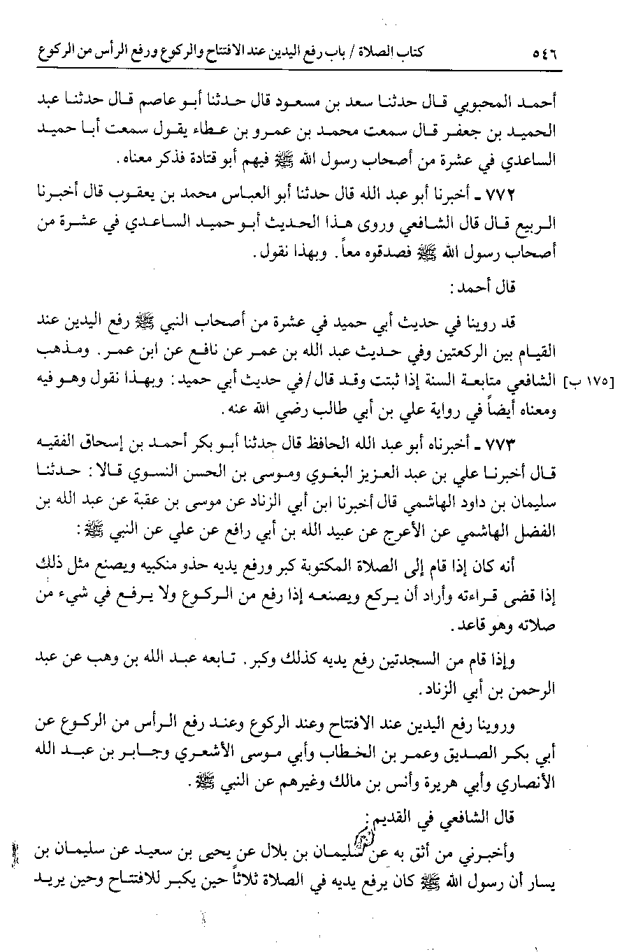 772 - أخبرنا أبو عبد الله قال حدثنا أبو العباس محمد بن يعقوب قال أخبرنا الربيع قال قال الشافعي وروى هذا الحديث أبو حميد الساعدي في عشرة من أصحاب رسول الله صلى الله عليه وسلم فصدقوه معا . وبهذا نقول.
