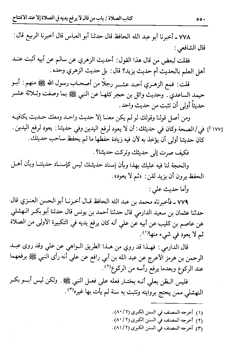 ومن أصل قولنا وقولك لو لم يكن معنا إلا حديث واحد ومعك حديث يكافيه في الصحة وكان في حديثك : أن لا يعود لرفع اليدين وفي حديثنا : يعود لرفع اليدين.