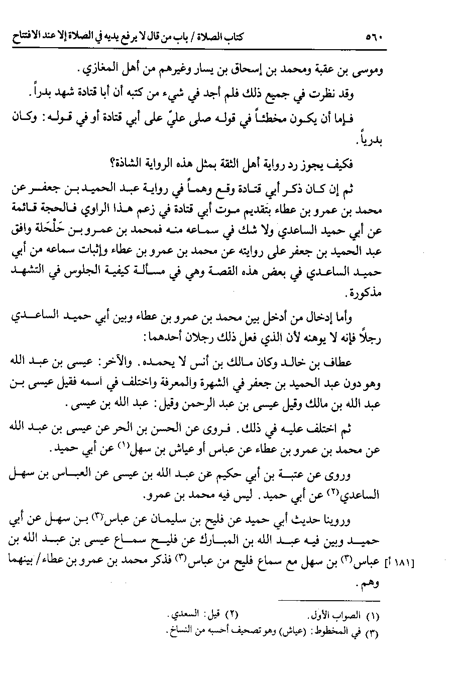 وأما إدخال من أدخل بين محمد بن عمرو بن عطاء وبين أبي حميد الساعدي رجلا فإنه لا يوهنه لأن الذي فعل ذلك رجلان أحدهما : عطاف بن خالد وكان مالك بن أنس لا يحمده . والآخر : عيسى بن عبد الله وهو دون عبد الحميد بن جعفر في الشهرة والمعرفة واختلف في اسمه فقيل عيسى بن عبد الله بن مالك وقيل عيسى بن عبد الرحمن وقيل : عبد الله بن عيسى.