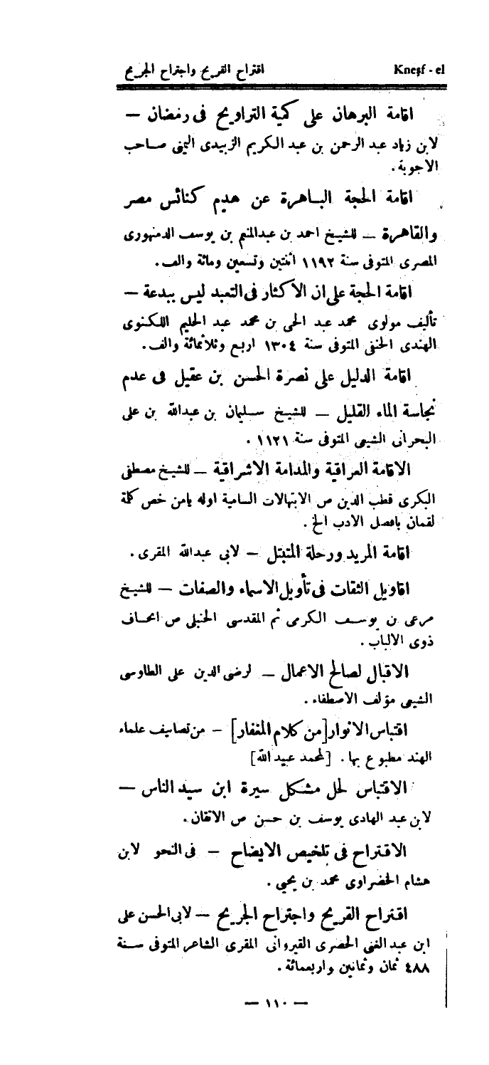 إقامة الحجة الباهرة عن هدم كنائس مصر والقاهرة - للشيخ أحمد بن عبد المنعم بن يوسف الدمنهوري المصري المتوفى سنة 1192 اثنتين وتسعين ومائة وألف.