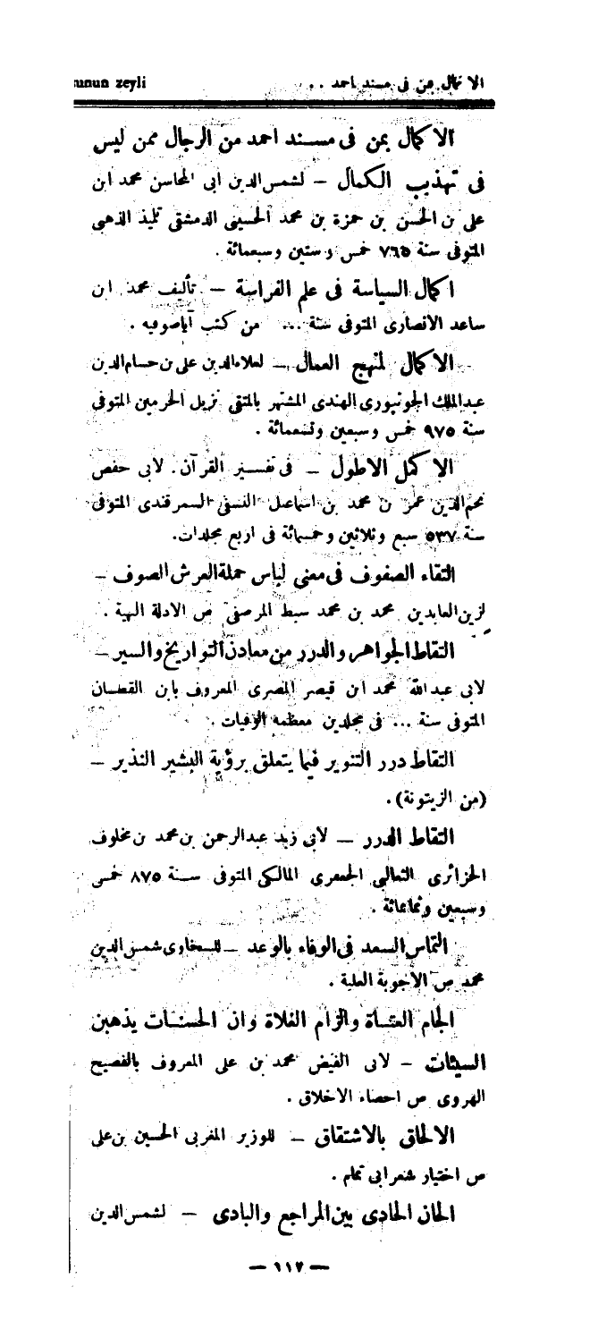 الإكمال بمن في مسند أحمد من الرجال من ليس في تهذيب الكمال - لشمس الدين أبي المحاسن محمد ابن علي بن الحسن بن حمزة بن محمد الحسيني الدمشقي تلميذ الذهبي المتوفى سنة 765 خمس وستين وسبعمائة.