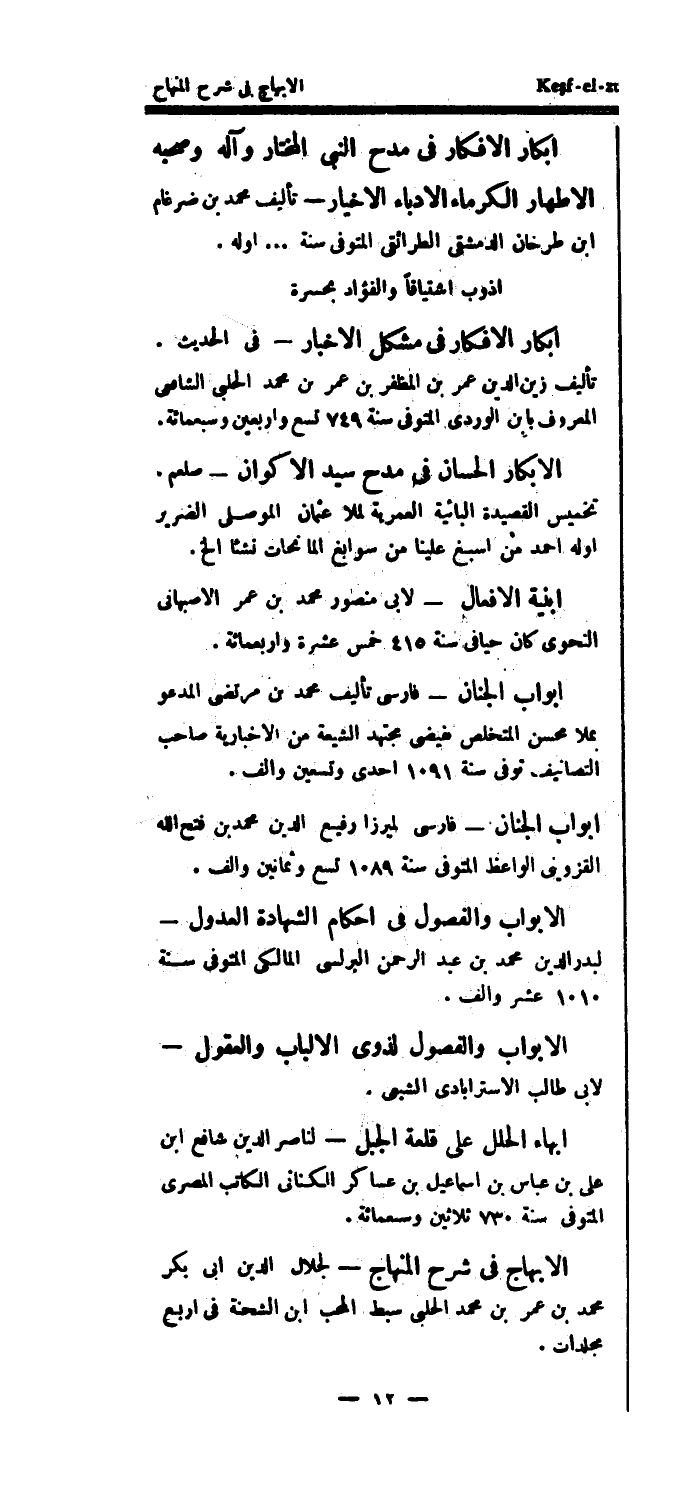 إبهاء الحلل على قلعة الجبل - لناصر الدين شافع ابن علي بن عباس بن إسماعيل بن عساكر الكناني الكاتب المصري المتوفى سنة 730 ثلاثين وسبعمائة.