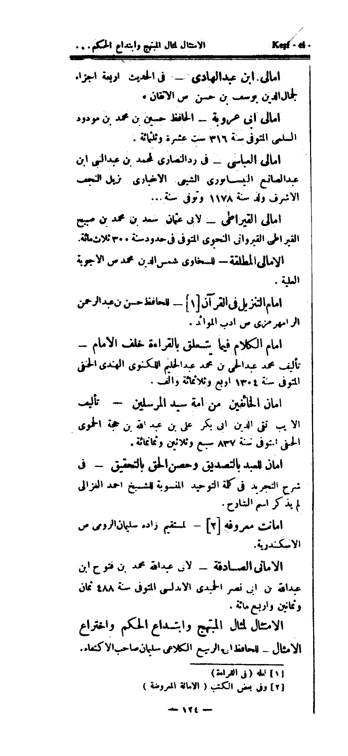 أمالي العباسي - في رد النصارى لمحمد بن عبد النبي ابن عبد الصانع النيسابوري الشيعي الإخباري نزيل؟ النجف الأشرف ولد سنة 1178 وتوفى سنة..أمالي القيراطي - لأبي عثمان سعد بن محمد بن صبيح القيراطي القيرواني النحوي المتوفى في حدود سنة 300 ثلاث مائة.