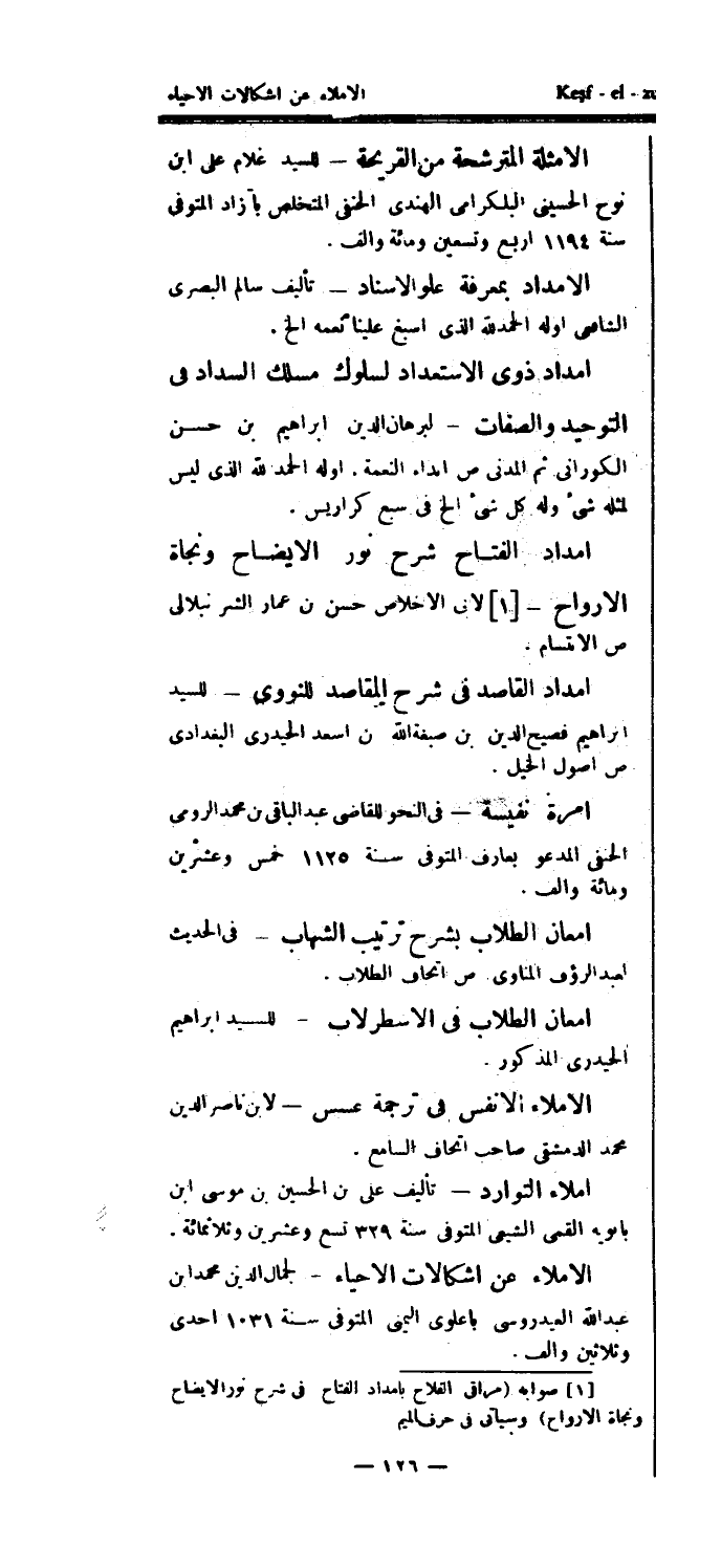الإملاء عن إشكالات الأحياء - لجمال الدين محمد ابن عبد الله العيدروسي باعلوي اليمني المتوفى سنة 1031 إحدى وثلاثين والف.