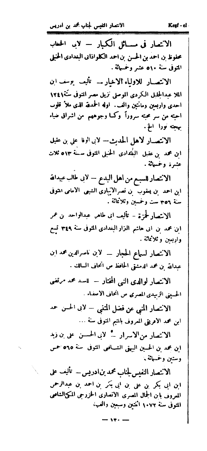 الانتصار لوالدي النبي المختار - للسيد محمد مرتضى الحسيني الزبيدي المصري ص اتحاف الأصفياء.