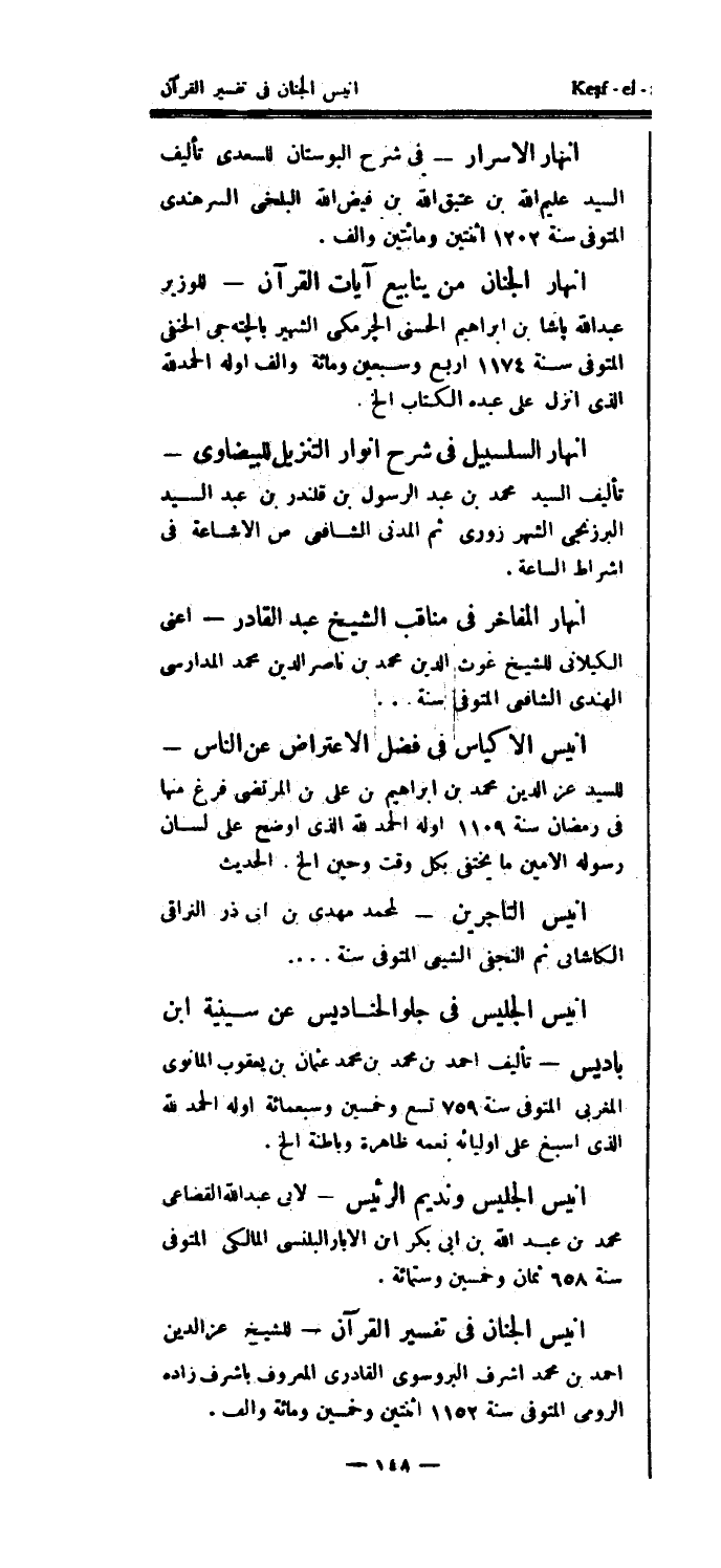 أنهار المفاخر في مناقب الشيخ عبد القادر - أعني الكيلاني للشيخ غوث الدين محمد بن ناصر الدين محمد المدارسي الهندي الشافعي المتوفى سنة..أنيس الأكياس في فضل الاعتراض عن الناس - للسيد عز الدين محمد بن إبراهيم بن علي بن المرتضي فرغ منها في رمضان سنة 1109 اوله الحمدلله الذي أوضح على لسان رسوله الأمين ما يختفي بكل وقت وحين الخ.
