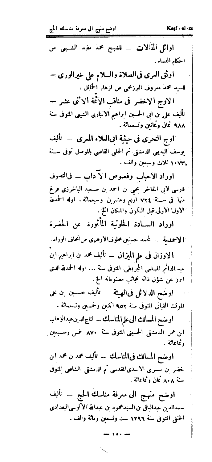 أوضح منهج إلى معرفة مناسك الحج - تأليف سعد الدين عبد الباقي بن السيد محمود بن عبد الله الألوسي البغدادي