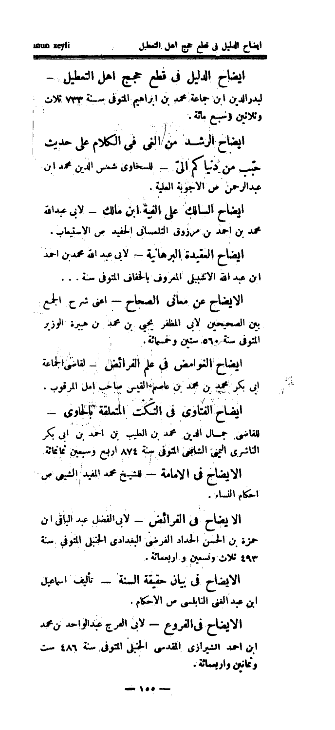 إيضاح العقيدة البرهانية - لأبي عبد الله محمد بن أحمد ابن عبد الله الإشبيلي المعروف بالخفاف المتوفى سنة..الإيضاح عن معاني الصحاح - أعني شرح الجمع بين الصحيحين لأبي المظفر يحيى بن محمد بن هبيرة الوزير المتوفى سنة 560 ستين وخمسمائة.
