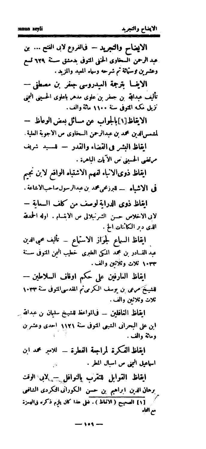 إيقاظ ذوي الأنباء لفهم الاشتباه الواقع لابن نجيم في الاشباه - للبرزنجي؟ محمد بن عبد الرسول صاحب الإشاعة.