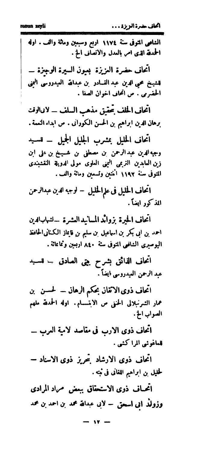 إتحاف الخليل بمشرب الجليل الجميل - للسيد وجيه الدين عبد الرحمن بن مصطفى بن شيخ بن علي ابن زين العابدين التريمي اليمني العلوي مولى الدويلة النقشبندي المتوفى سنة 1192 اثنتين وتسعين ومائة وألف.