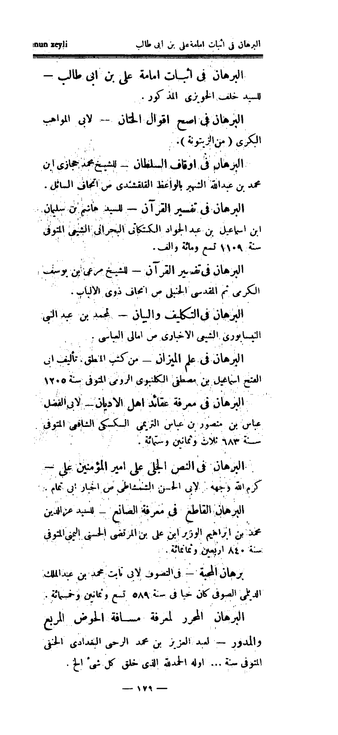 تأليف أبي الفتح إسماعيل بن مصطفى الكلنبوي الرومي المتوفى سنة 1205 البرهان في معرفة عقائد أهل الأديان - لأبي الفضل عباس بن منصور بن عباس التريمي السكسكي الشافعي المتوفى سنة 683 ثلاث وثمانين وستمائة.