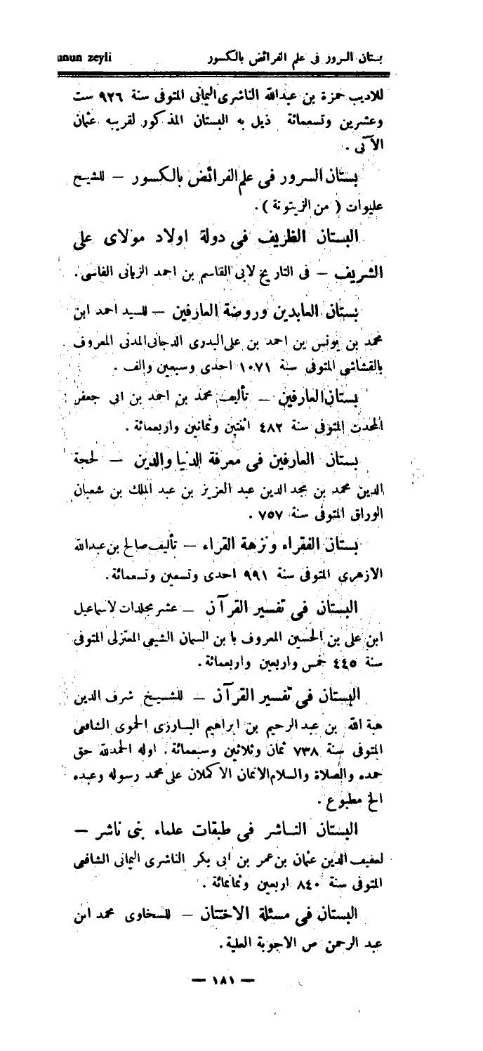 للأديب حمزة بن عبد الله الناشري اليماني المتوفى سنة 926 ست وعشرين وتسعمائة ذيل به البستان المذكور لقريبه عثمان الآتي.