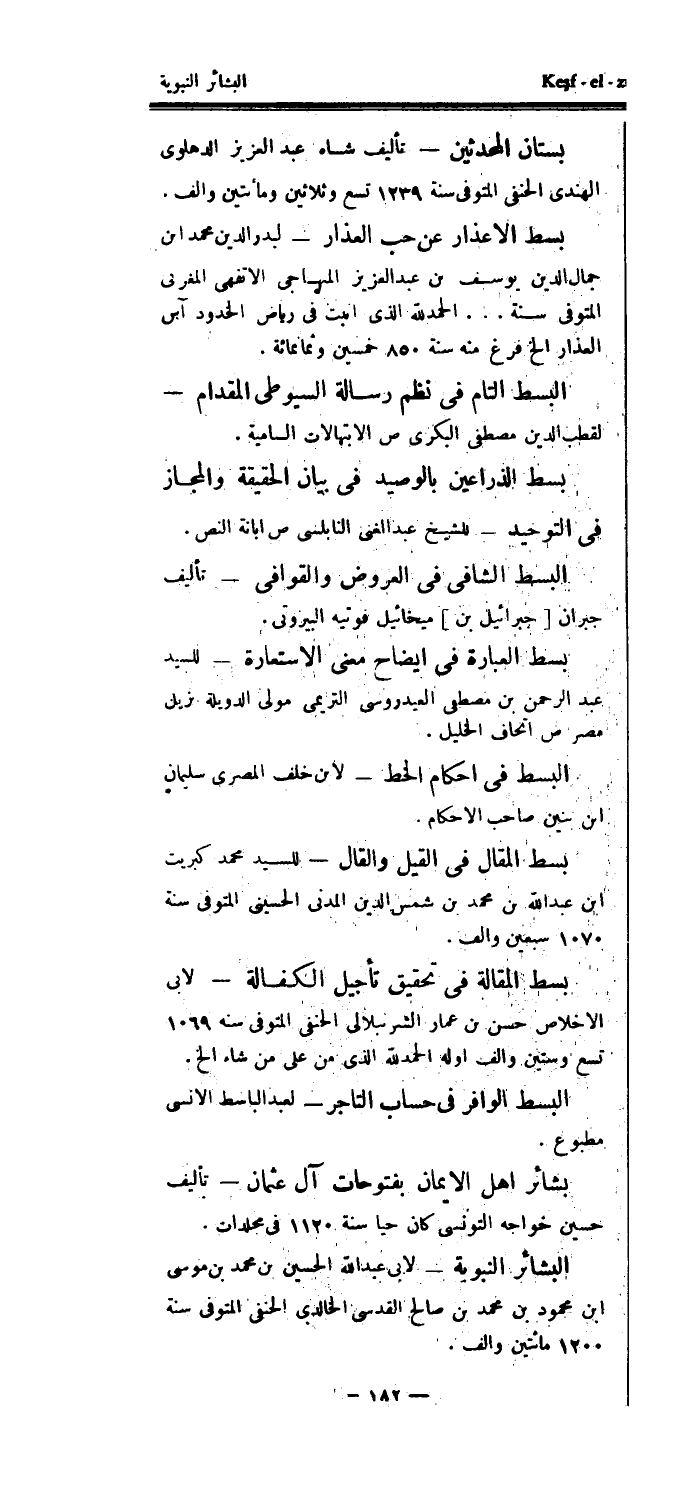 بستان المحدثين - تأليف شاه عبد العزيز الدهلوي الهندي الحنفي المتوفى سنة 1239 تسع وثلاثين ومائتين وألف.