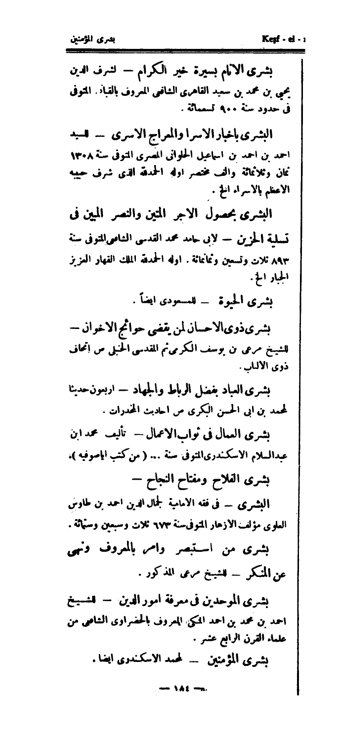 بشرى المؤمنين - لمحمد الإسكندري أيضاً.