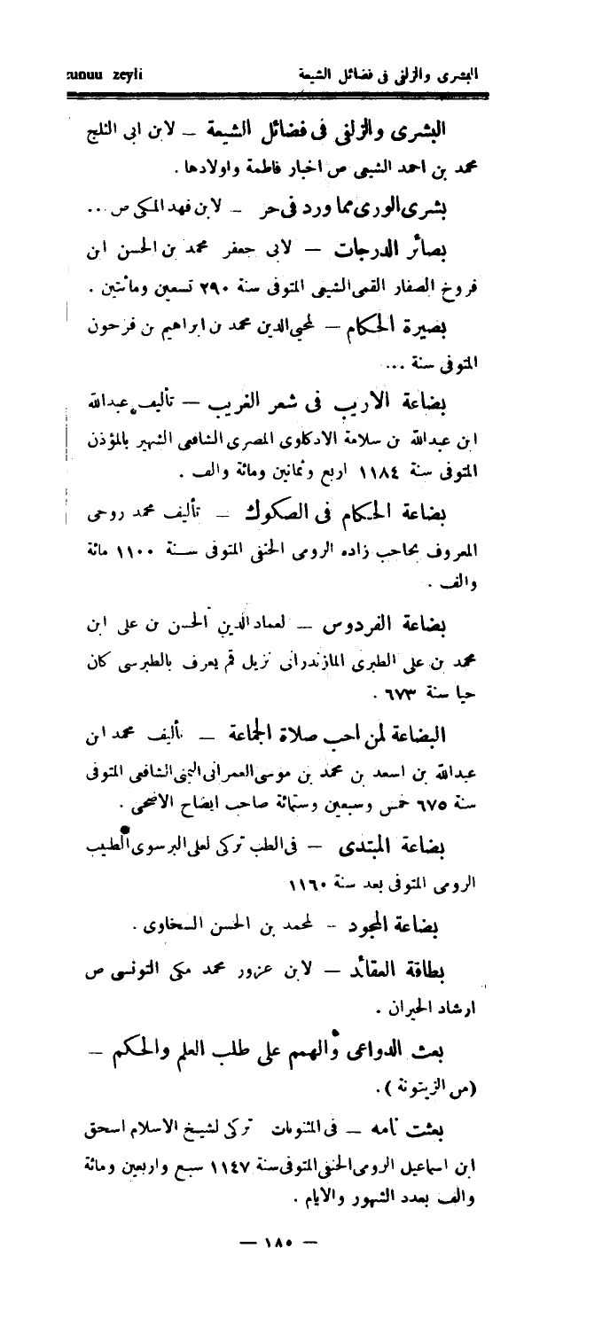 بضاعة الفردوس - لعماد الدين الحسن بن علي ابن محمد بن علي الطبري المازندراني نزيل قم يعرف بالطبرسي كان حيا سنة 673.