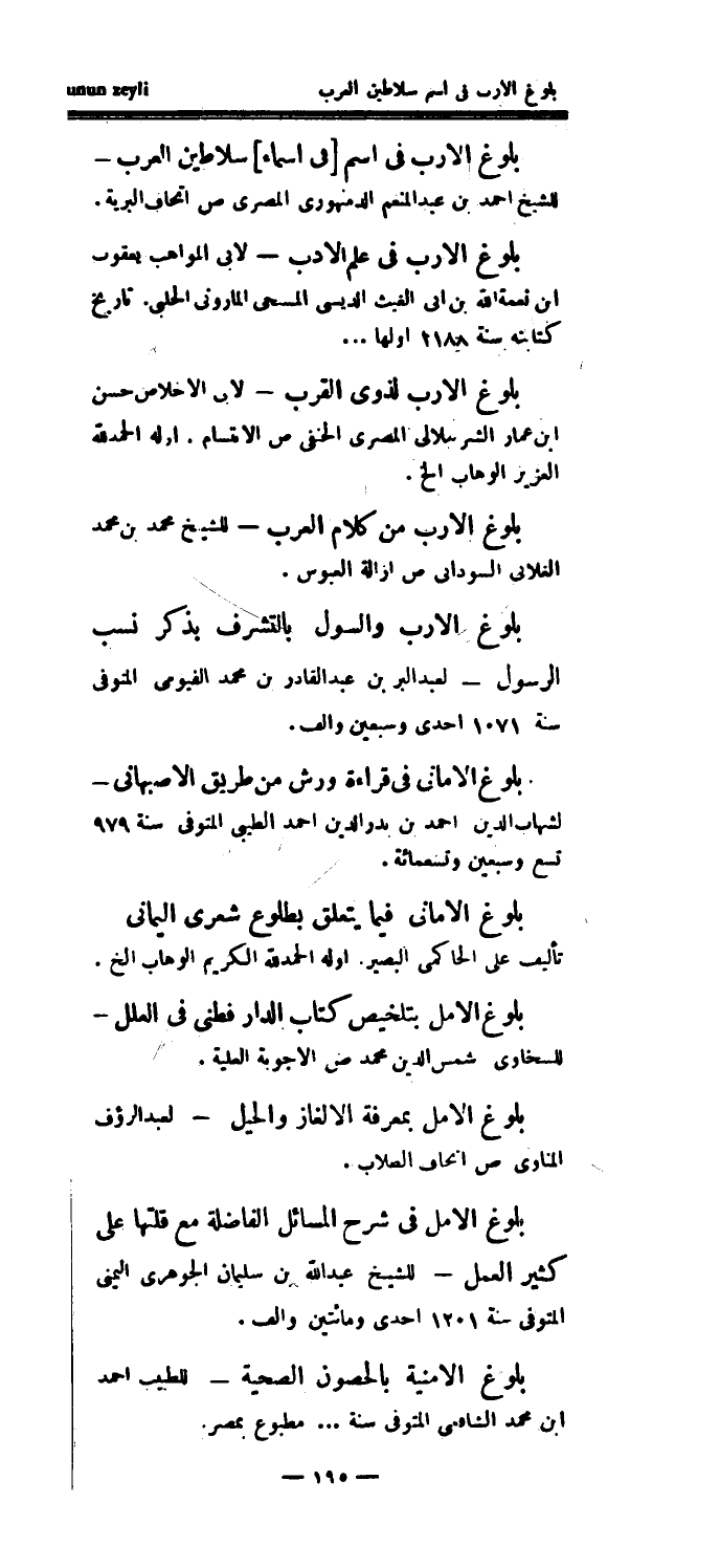 بلوغ الأرب في اسم [في أسماء] سلاطين العرب - للشيخ أحمد بن عبد المنعم الدمنهوري المصري ص أتحاف البرية.