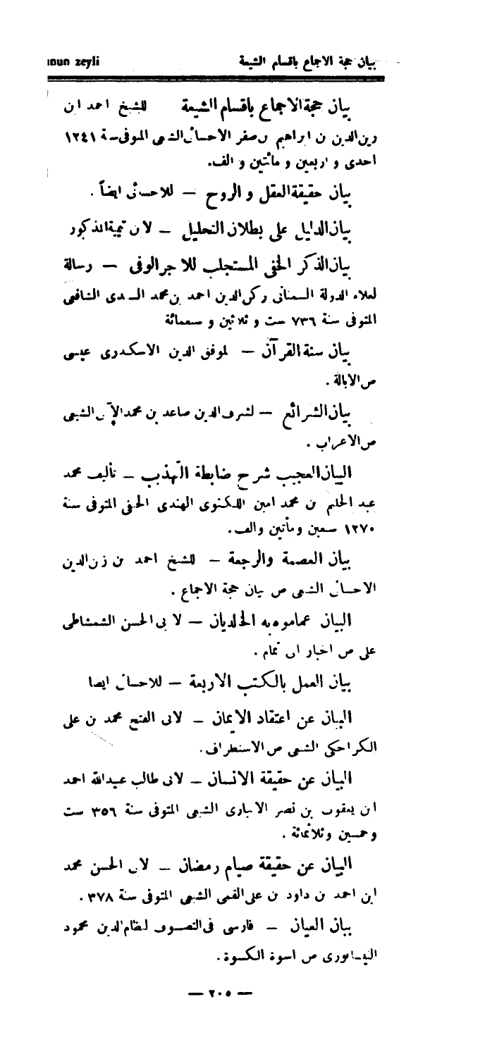 بيان حجة الإجماع بأقسام الشيعة - للشيخ أحمد ابن زين الدين بن إبراهيم بن صفر الإحسائي الشيعي المتوفى سنة 1241 إحدى وأربعين ومائتين وألف.