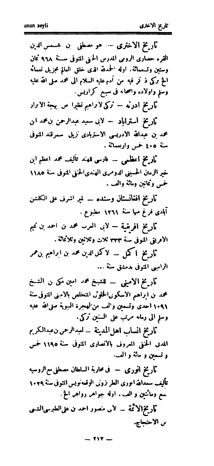 تاريخ الأختري - هو مصطفى بن شمس الدين القره حصارى الرومي المدرس الحنفي المتوفى سنة 968 ثمان وستين وتسعمائة.