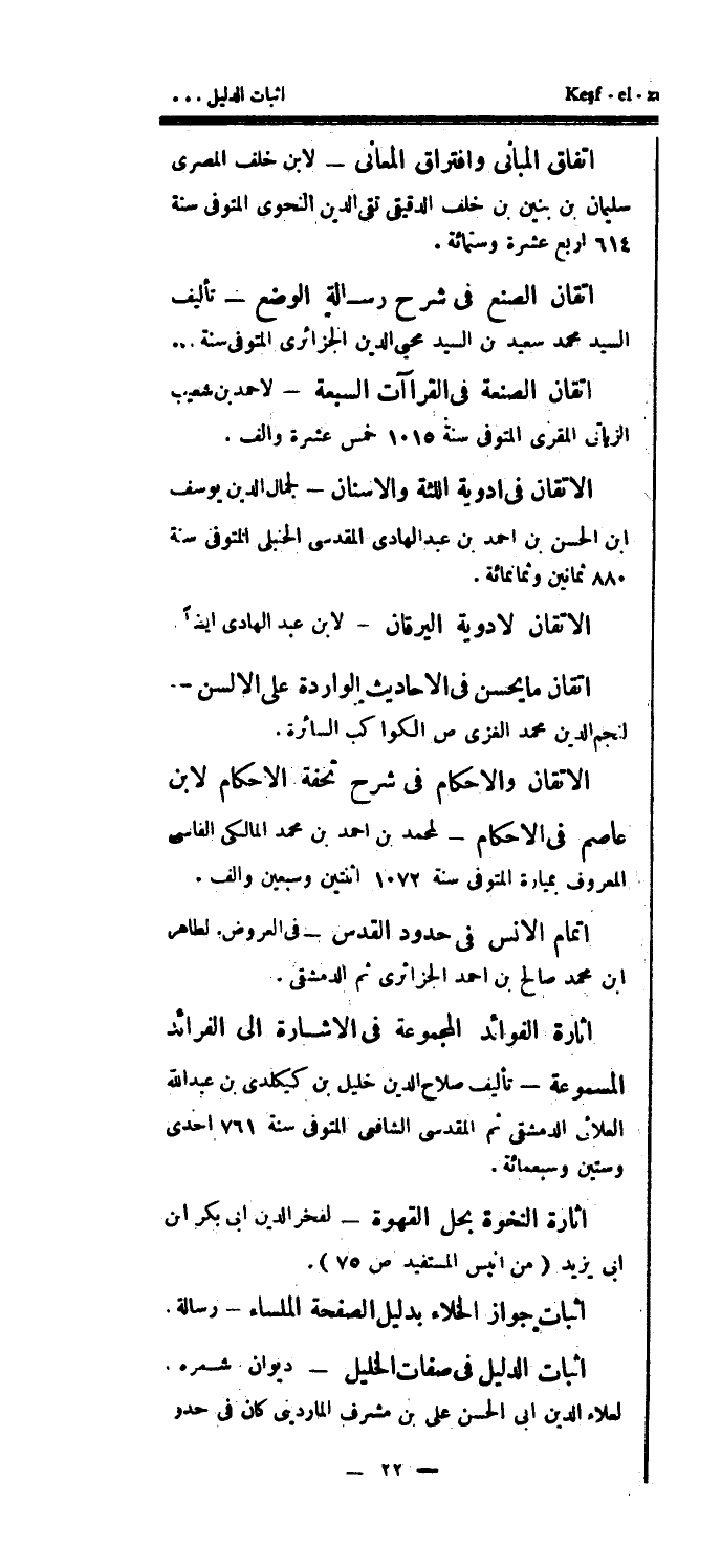 إتقان الصنع في شرح رسالة الوضع - تأليف السيد محمد سعيد بن السيد محيي الدين الجزائري المتوفى سنة..إتقان الصنعة في القراآت السبعة - لأحمد بن شعيب الزياتي المقري المتوفى سنة 1015 خمس عشرة وألف.