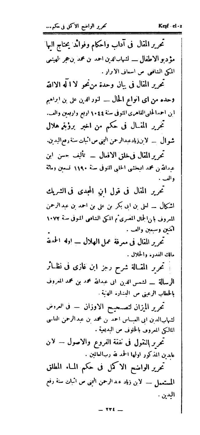 تحرير المقال في آداب وأحكام وفوائد يحتاج إليها مؤدبو الأطفال - لشهاب الدين أحمد بن محمد بن حجر الهيتمى المكي الشافعي ص إسعاف الأبرار.