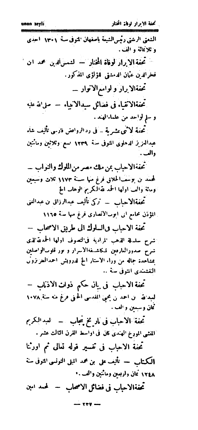 تحفة لاثنى عشرية - في رد الروافض فارسي تأليف شاه عبد العزيز الدهلوي المتوفى سنة 1239 تسع وثلاثين ومائتين وألف.