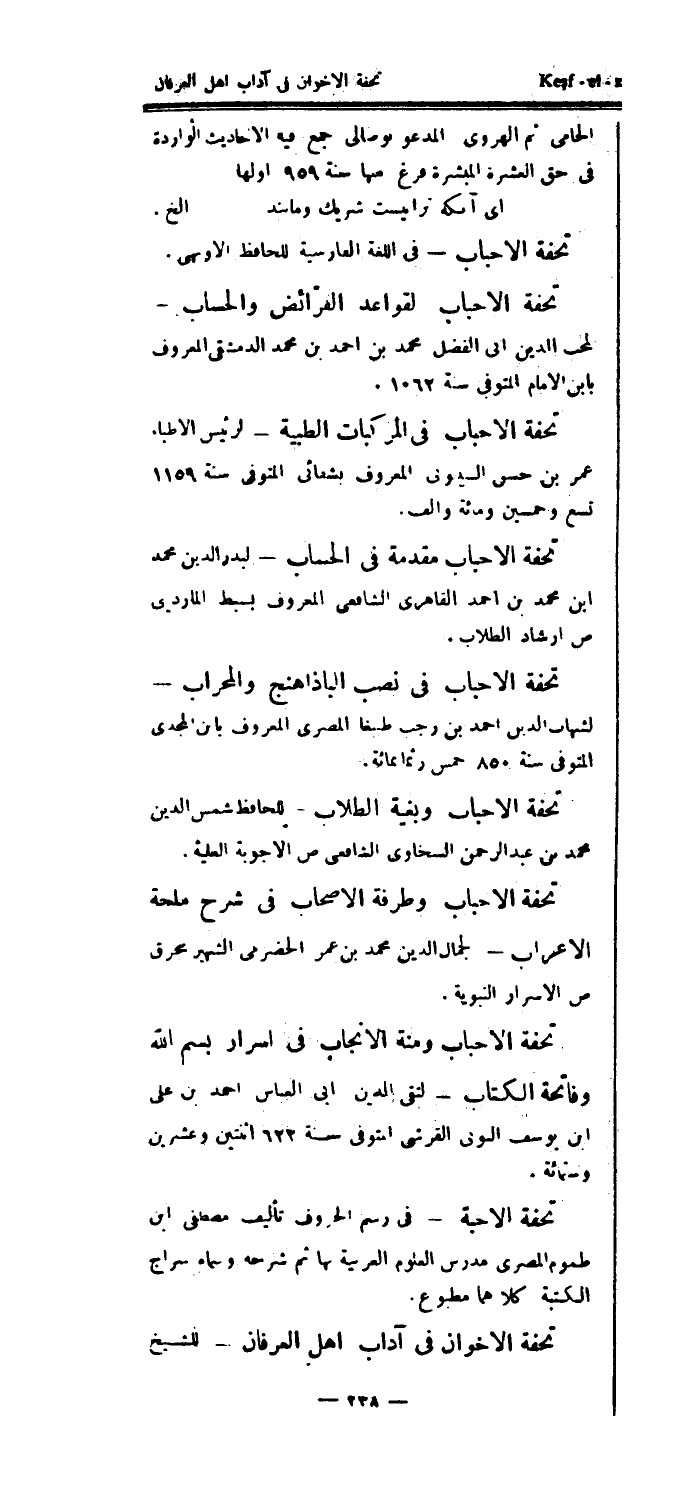تحفة الأحباب - في اللغة الفارسية للحافظ الأوبهي؟.