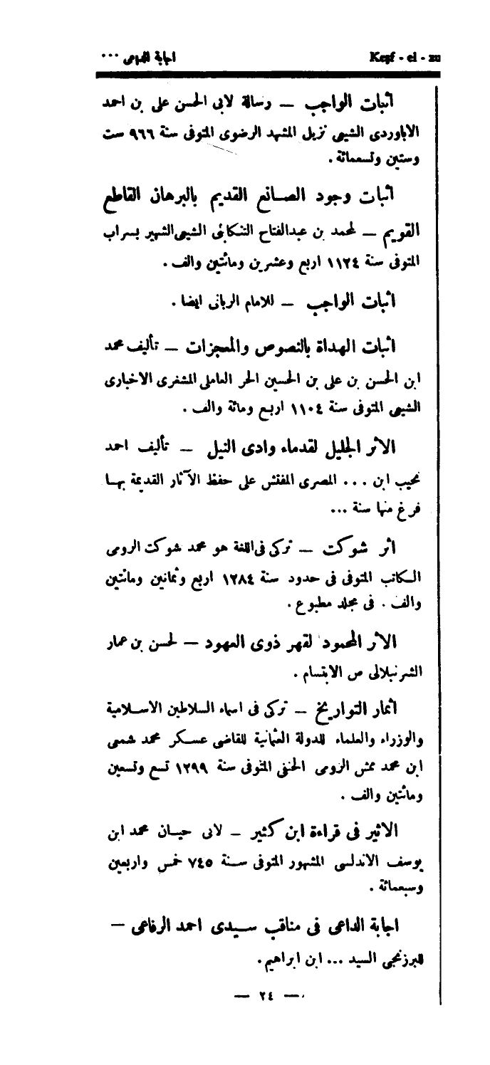 إثبات الواجب - رسالة لأبي الحسن على بن أحمد الأباوردي الشيعي نزيل المشهد الرضوى المتوفى سنة 966 ست وستين وتسعمائة.