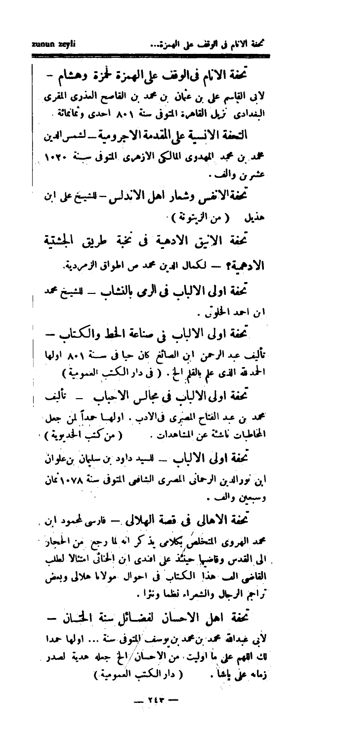تحفة الأهالي في قصة الهلالي - فارسي لمحمود ابن محمد الهروى المتخلص بكلامي يذكر انه لما رجع من الحجار إلى القدس وقاضيها حينئذ على افندي ابن الحنائي امتثالا لطلب القاضي ألف هذا الكتاب في أحوال مولانا هلالي وبعض تراجم الرجال والشعراء نظماً ونثراً.