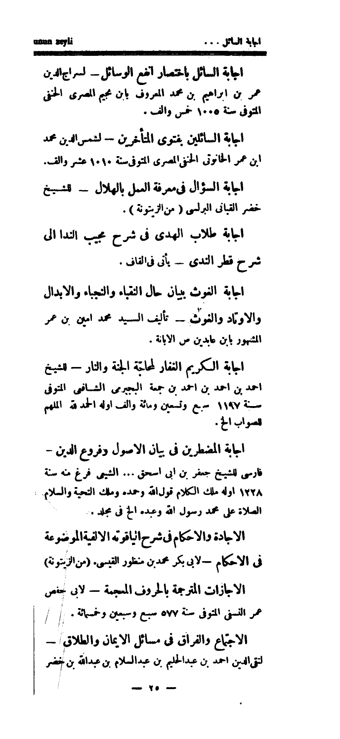 إجابة السائل باختصار أنفع الوسائل - لسراج الدين عمر بن إبراهيم بن محمد المعروف بابن مجيم؟ المصري الحنفي المتوفى سنة 1005 خمس وألف.