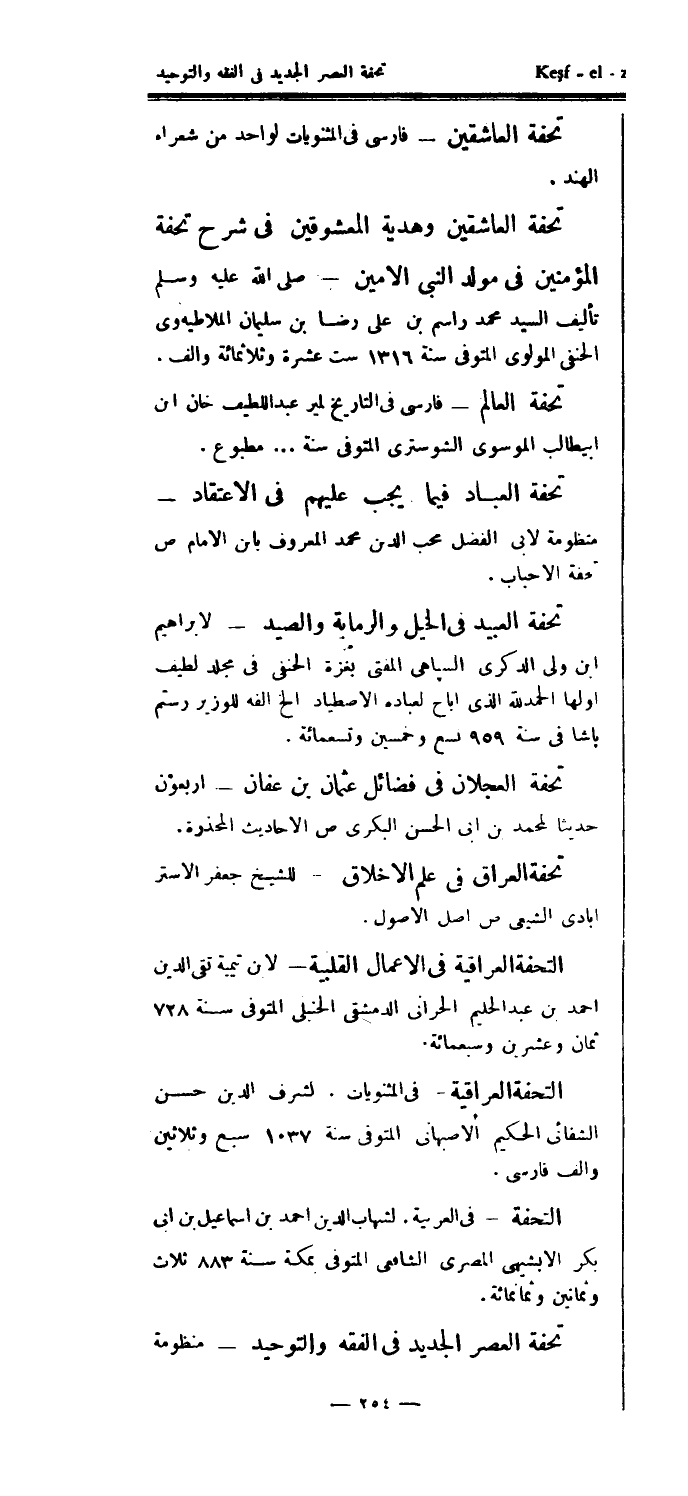 تحفة العباد فيما يجب عليهم في الاعتقاد - منظومة لأبي الفضل محب الدين محمد المعروف بابن الإمام ص تحفة الأحباب.
