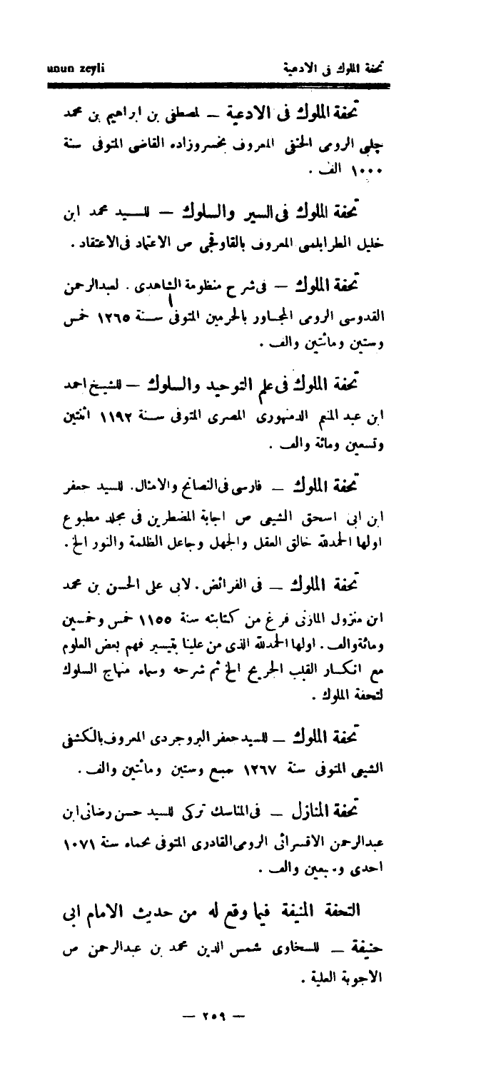 تحفة الملوك في الأدعية - لمصطفى بن إبراهيم بن محمد چلبى الرومي الحنفي المعروف بخسرو زاده القاضي المتوفى سنة 1000 ألف.