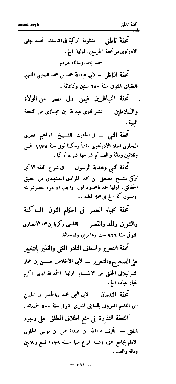 تحفهء ناطق - منظومة تركية في المناسك لمحمد چلبى الأدرنوي ص تحفة الحرمين.