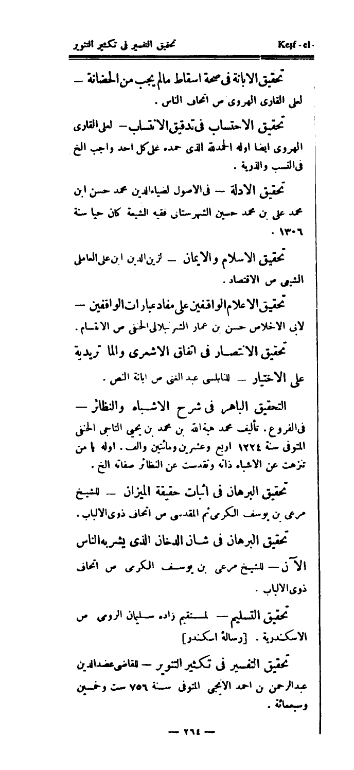 تحقيق الأدلة - في الأصول لضياء الدين محمد حسن ابن محمد علي بن محمد حسين الشهرستاني فقيه الشيعة كان حيا سنة 1306.