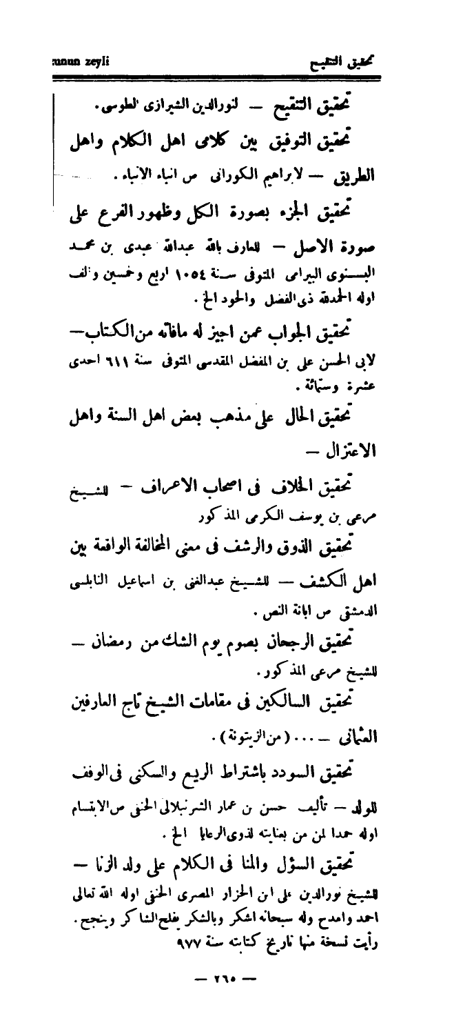 تحقيق الحال على مذهب بعض أهل السنة وأهل الاعتزال - تحقيق الخلاف في أصحاب الأعراف - للشيخ مرعي بن يوسف الكرمي المذكور تحقيق الذوق والرشف في معنى المخالفة الواقعة بين أهل الكشف - للشيخ عبد الغني بن إسماعيل النابلسي الدمشقي ص إبانة النص.
