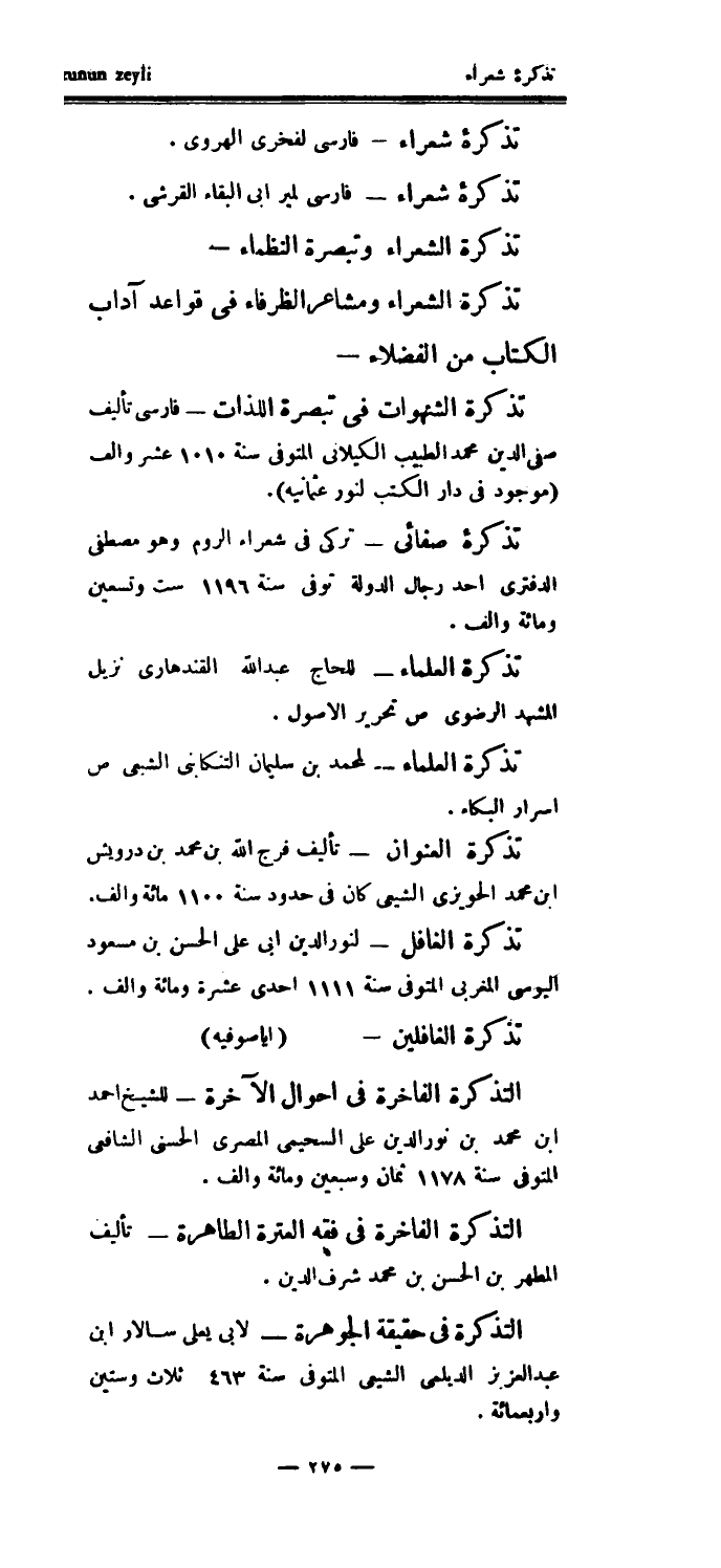 تذكرة الشعراء وتبصرة النظماء - تذكرة الشعراء ومشاعر الظرفاء في قواعد آداب الكتاب من الفضلاء - تذكرة الشهوات في تبصرة اللذات - فارسي تأليف صفي الدين محمد الطبيب الكيلاني المتوفى سنة 1010 عشر وألف (موجود في دار الكتب لنور عثمانيه) .