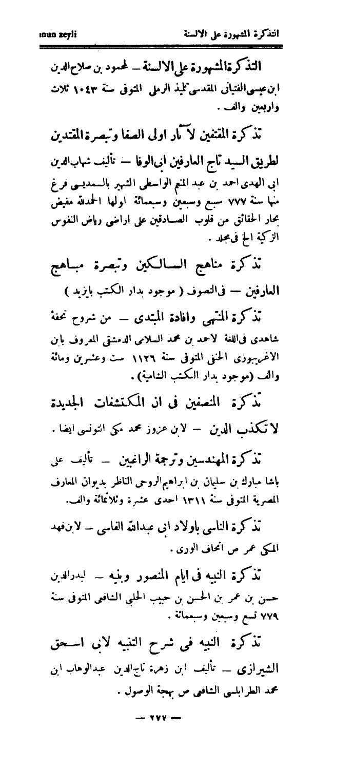 التذكرة المشهورة على الألسنة - لمحمود بن صلاح الدين ابن عيسى الفتياني المقدسي تلميذ الرملي المتوفى سنة 1043 ثلاث وأربعين وألف.