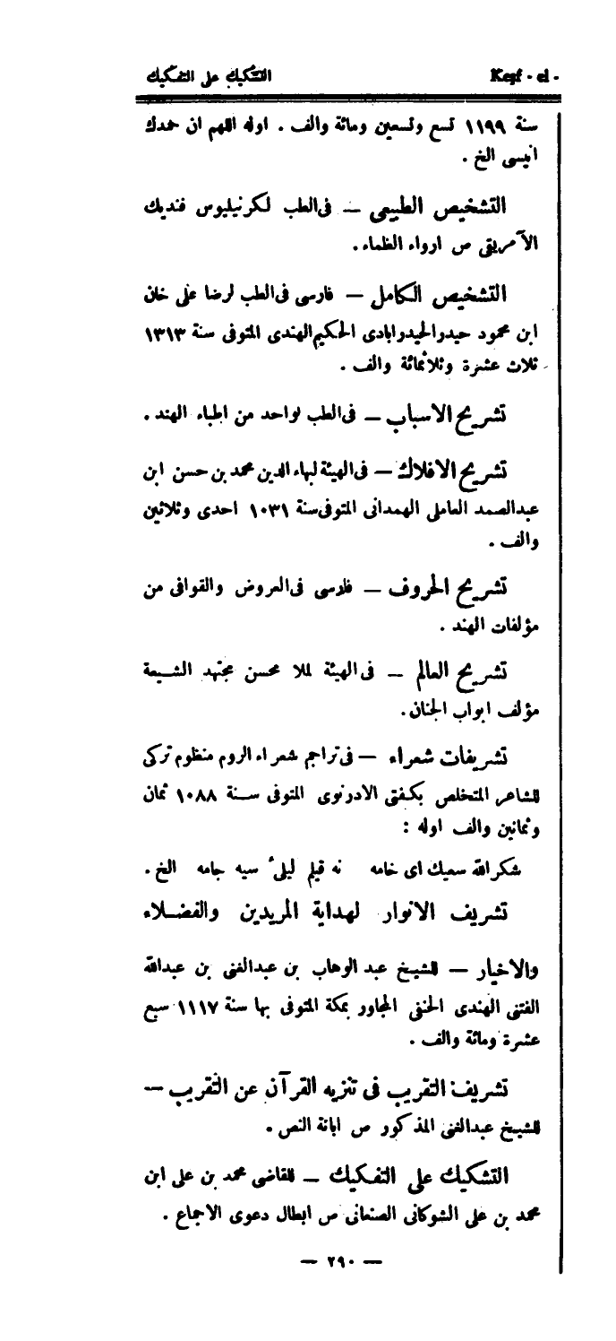 التشخيص الكامل - فارسي في الطب لرضا علي خان ابن محمود حيدر الحيدر أبادي الحكيم الهندي المتوفى سنة 1313 ثلاث عشرة وثلاثمائة وألف.