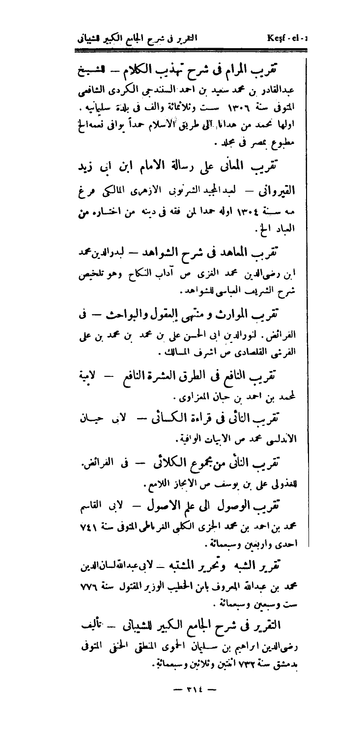 تقريب المرام في شرح تهذيب الكلام - للشيخ عبد القادر بن محمد سعيد بن احمد السنندجي الكردي الشافعي المتوفى سنة 1306 ست وثلاثمائة وألف في بلدة سليمانية.