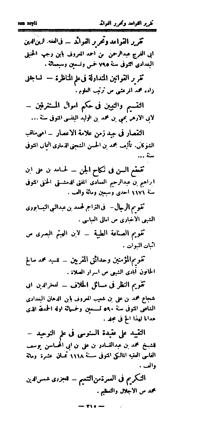 التقسيم والتبيين في حكم أموال المستغرقين - لأبي الأزهر يحيى بن محمد بن الوليد البلنسي المتوفى سنة..التقصار في جيد زمن علامة الإعصار - أعني؟ مناقب الشوكاني.