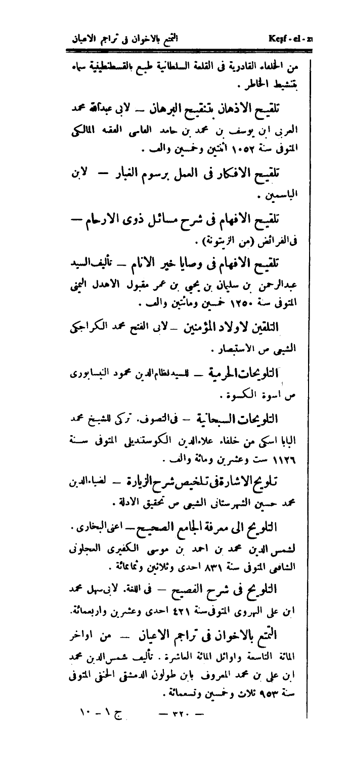 تلويح الإشارة في تلخيص شرح الزيارة - لضياء الدين محمد حسين الشهرستاني الشيعي ص تحقيق الأدلة.
