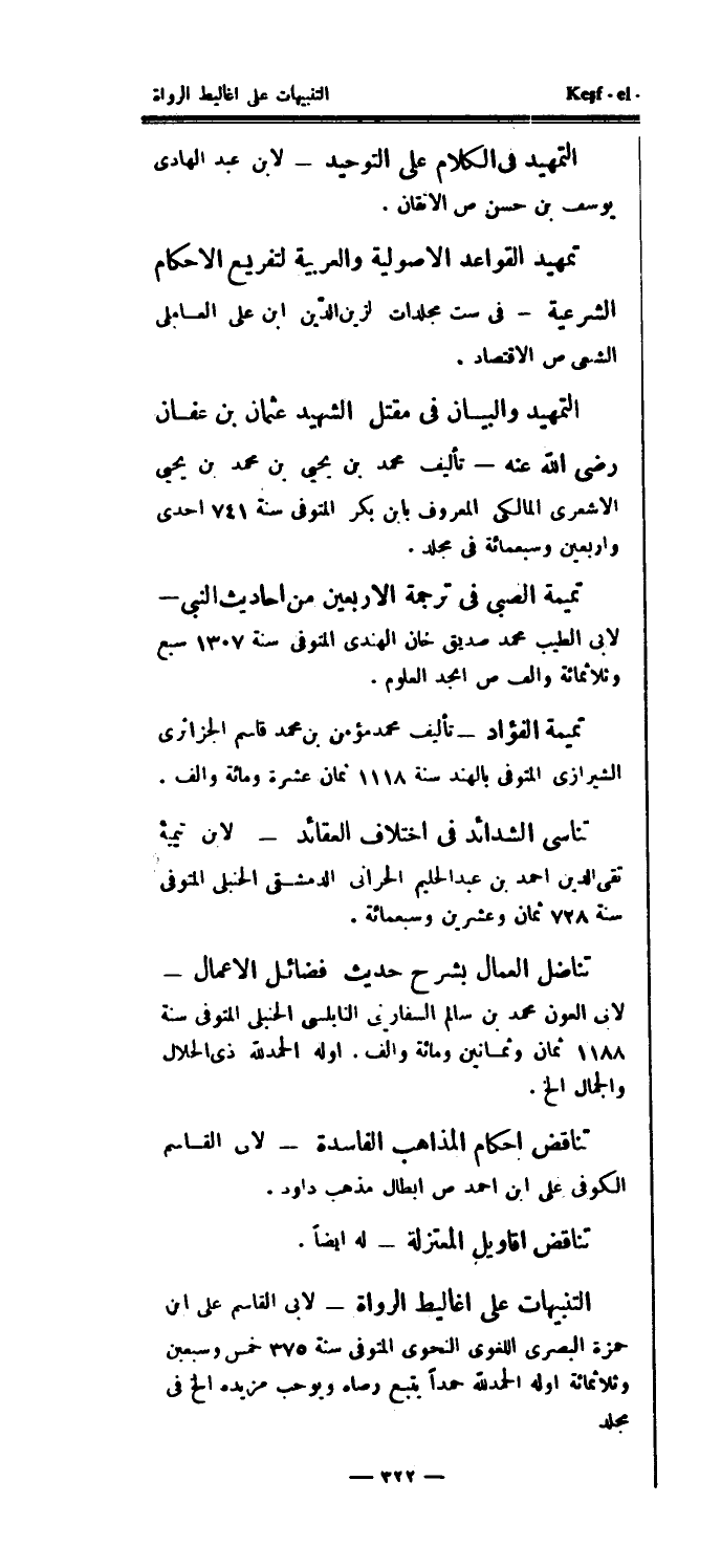 التنبيهات على أغاليط الرواة - لأبي القاسم علي ابن حمزة البصري اللغوي النحوي المتوفى سنة 375 خمس وسبعين وثلاثمائة أوله الحمدلله حمدا يتبع رصاه ويوحب مزيده الخ في مجلد