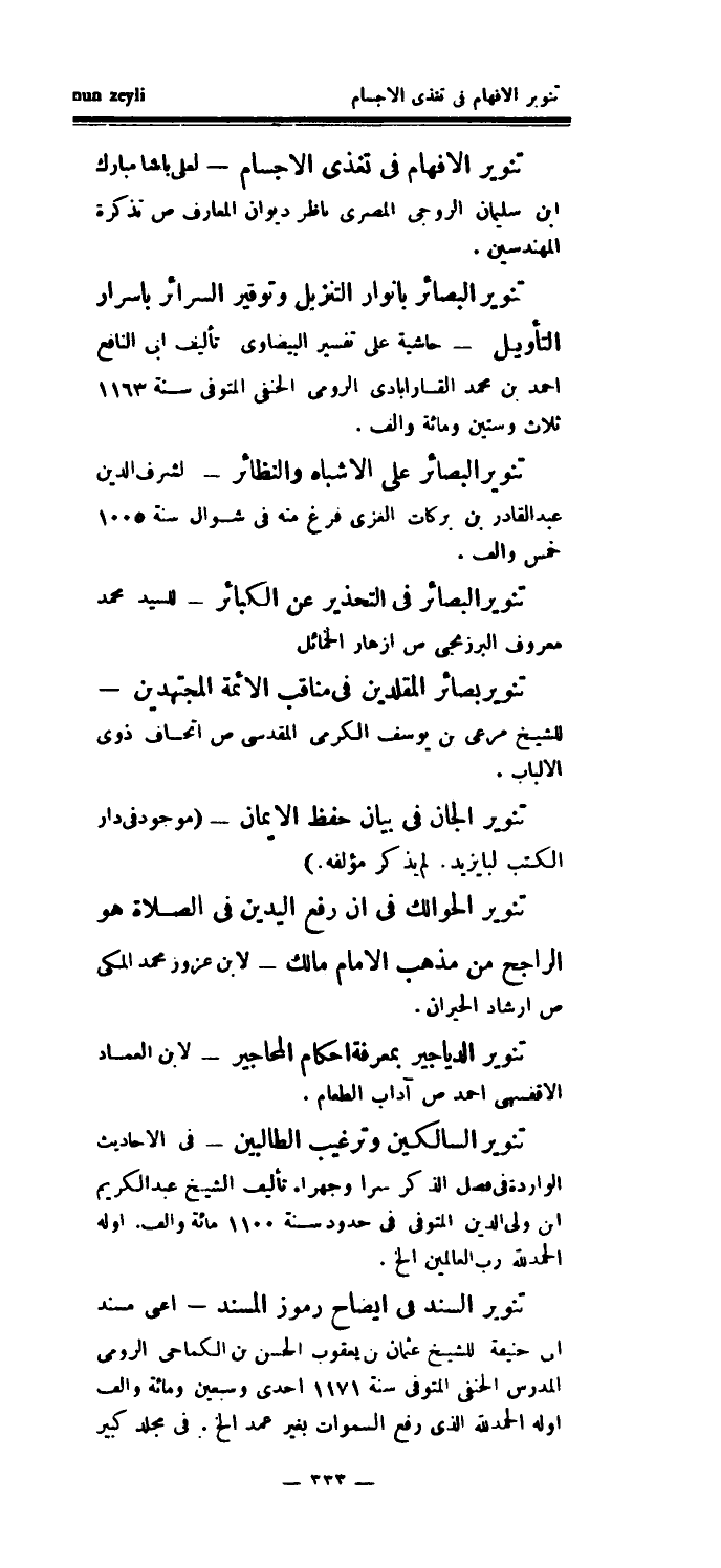 تنوير البصائر على الأشباه والنظائر - لشرف الدين عبد القادر بن بركات العزى فرغ منه في شوال سنة 1005 خمس وألف.