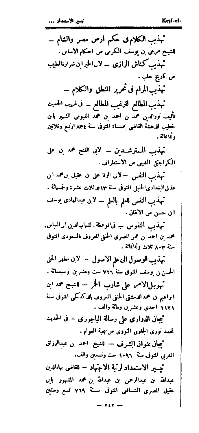 تهذيب المرام في تحرير المنطق والكلام - تهذيب المطالع لترغيب المطالع - في غريب الحديث تأليف نور الدين محمد بن أحمد بن محمد الفيومي الشهير بابن خطيب الدهشة القاضي بحماة المتوفى سنة 834 أربع وثلاثين وثمانمائة.
