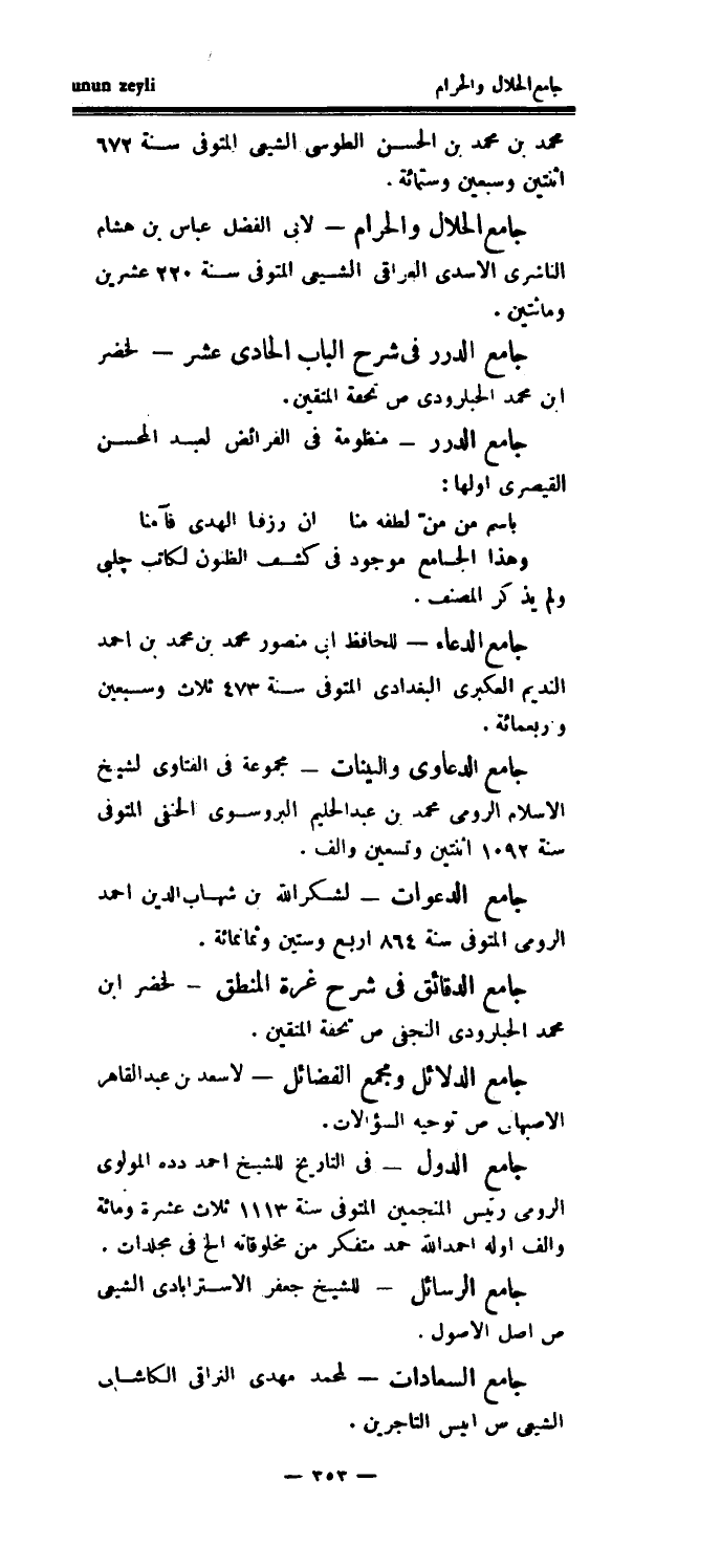 جامع الدرر - منظومة في الفرائض لعبد المحسن القيصري أولها: باسم من منّ لطفه منا أن رزفا الهدى فآمنا وهذا الجامع موجود في كشف الظنون لكاتب چلبى ولم يذكر المصنف.
