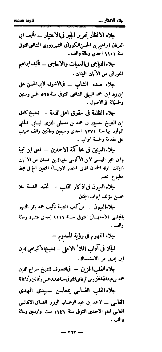 جلاء الظلمة في حقوق أهل الذمة - للشيخ كامل ابن الشيخ حسين بن محمد بن مصطفى الغزي البابي الحلبي المولود بها سنة 1271 إحدى وسبعين ومائتين وألف مرتب على مقدمة وخمسة أبواب.